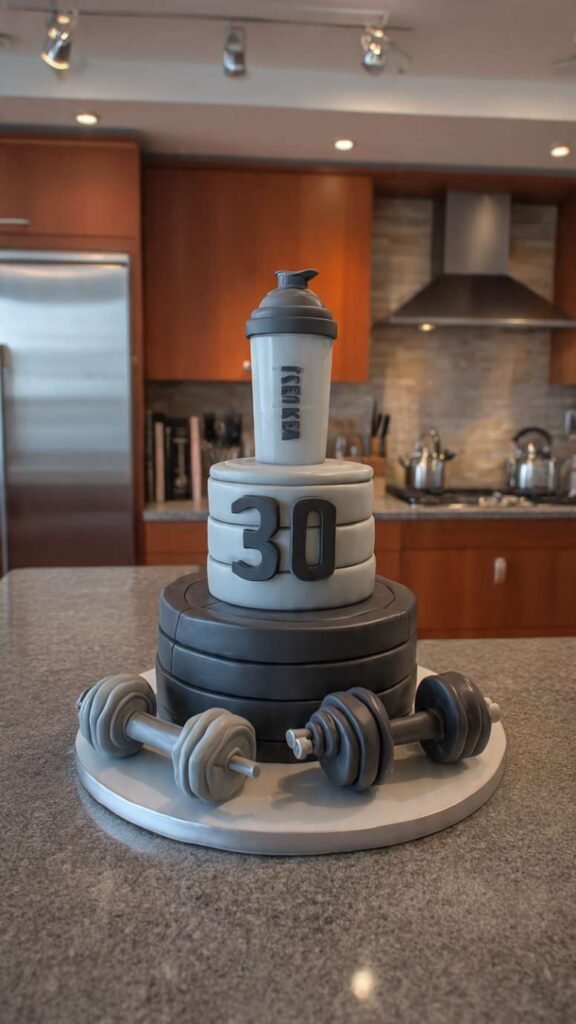 For the fitness enthusiast who lives at the gym and is serious about his workouts, create a cake that celebrates his dedication. Design it with fondant dumbbells, weight plates with “30” on them, protein shake bottles, gym equipment, or his best lifting stats. You could do tiers that look like stacked weight plates in gray and black, add muscle-themed decorations, or include his fitness goals. Use masculine colors like black, gray, silver, and maybe some red accents. It’s perfect for guys who are proud of their fitness journey and want to celebrate hitting thirty while still being in great shape. Works for gym parties or protein shake celebrations.
