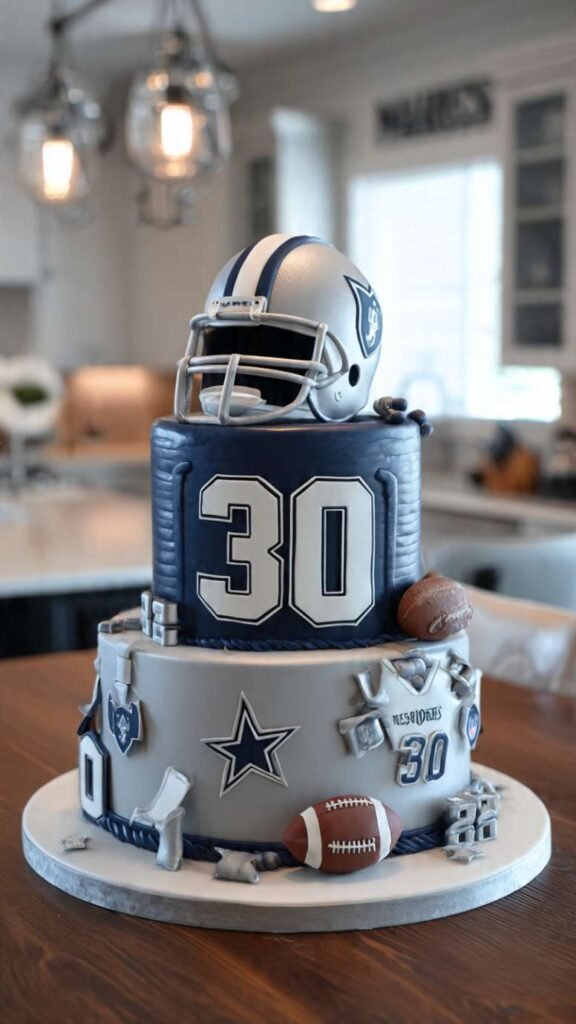 For the die-hard sports fan whose entire identity revolves around his team, create a cake in his team’s colors with their logo, jersey details, and sports equipment. Whether it’s football, basketball, baseball, soccer, or hockey, incorporate the team elements authentically. Use the exact team colors, add a jersey with his favorite player’s number (or 30), include the team logo, maybe add fondant sports equipment like footballs, basketballs, or hockey pucks. Add “30” in team colors. Make it clear this isn’t just any sports cake – it’s HIS team’s cake. Perfect for game day birthdays or watch party celebrations.