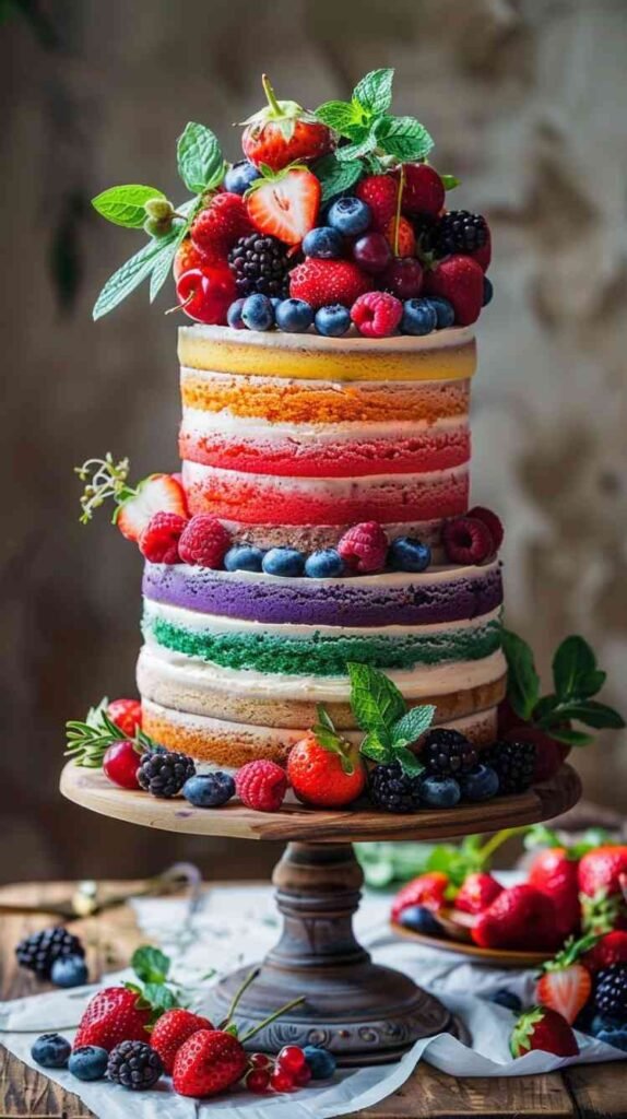 4. Naked Rainbow Cake with Fresh Berries
