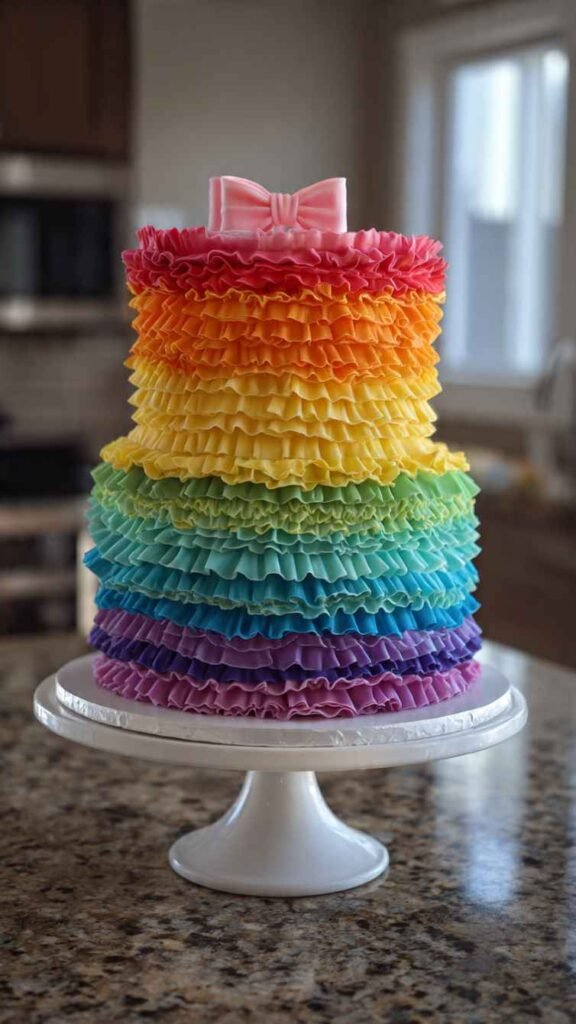 7. Rainbow Ruffle Layers Cake