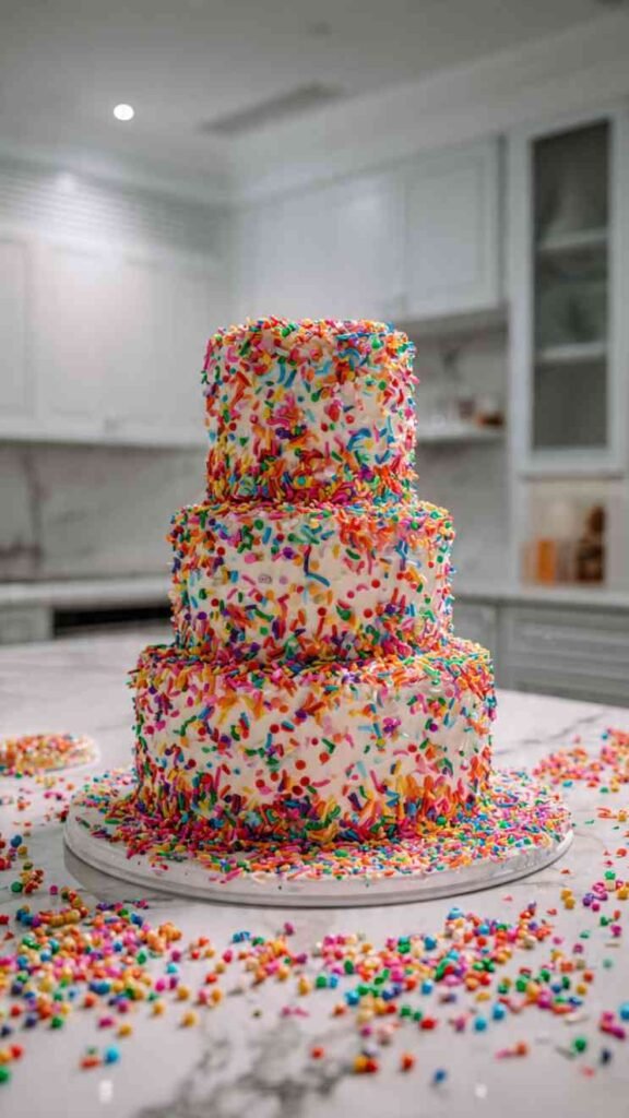 5. Rainbow Sprinkle Explosion Cake