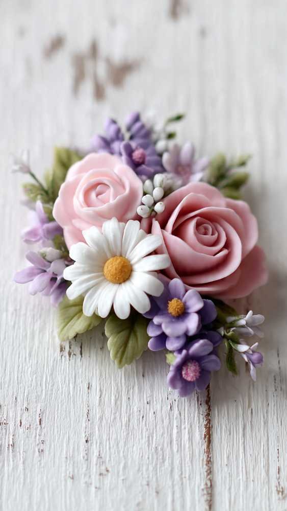 What It Is: Small sculpted clay magnets shaped like mini flower bouquets, with individual petals and leaves built up in layers.