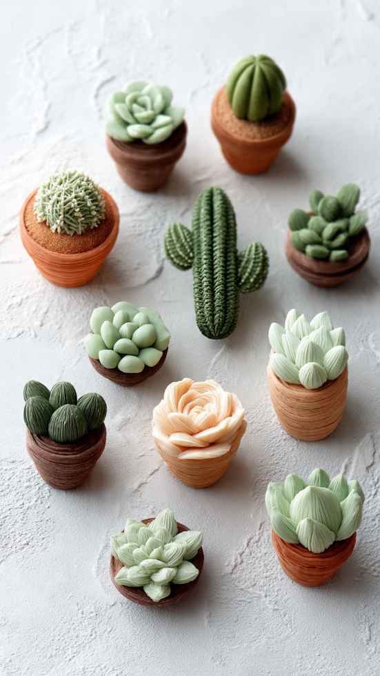 Supplies and Budget: Green polymer clay in multiple shades, brown/terracotta clay for pots ($10–14), toothpick for texture, disc magnets ($5), craft glue, matte varnish ($4). Total: $19–$23