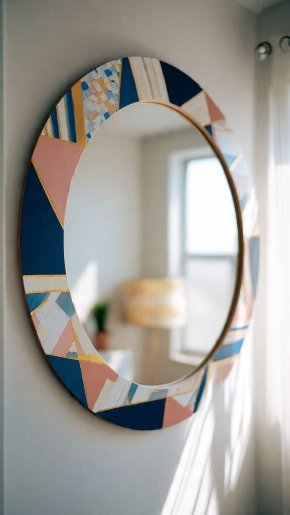 This is the most commitment-free option on this entire list because washi tape peels off cleanly which means you can change it whenever you want – seasonally, whenever you get bored, whenever your style changes. You use washi tape in coordinating patterns and colors to create a geometric border directly on the wall around a frameless mirror, or to add a decorative pattern to an existing plain frame. The result looks intentional and designed and the tape options available now are genuinely beautiful. This is perfect for renters, for kids rooms, and for anyone who likes to change their decor frequently.