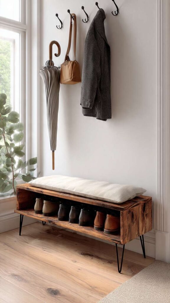 Most of these builds are beginner-friendly too. You don’t need a workshop full of tools or advanced woodworking skills. A lot of them use basic lumber, pipes, crates, or things you already have. The hardest part is honestly just committing to starting, and once you do the whole project usually comes together faster than you expected. Your entryway is about to look so much better.