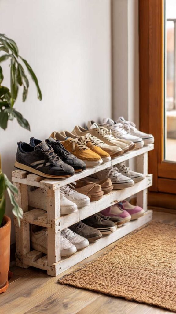 9. Repurposed Pallet Shoe Rack