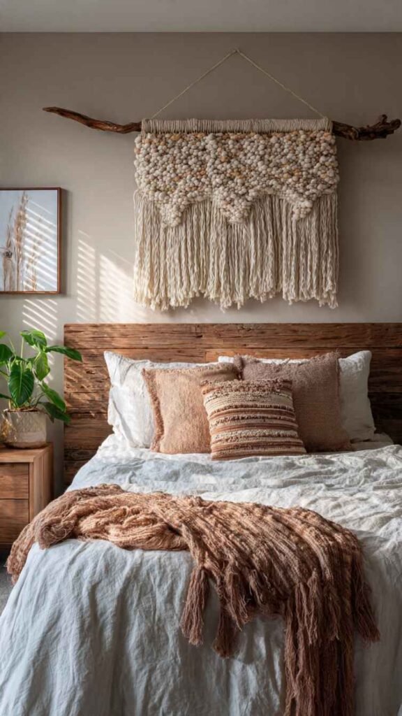 Macrame wall hangings have been having a moment for years now and honestly they deserve it because there is nothing else that adds warmth, texture, and that handcrafted quality to a wall the way a large piece of macrame does. The basic knots are genuinely simple to learn – square knots and half hitches will get you through almost any beginner pattern – and within a few hours you have something substantial enough to make a real statement. Large pieces look especially incredible above a bed or sofa where they fill vertical wall space beautifully without weighing the room down visually.