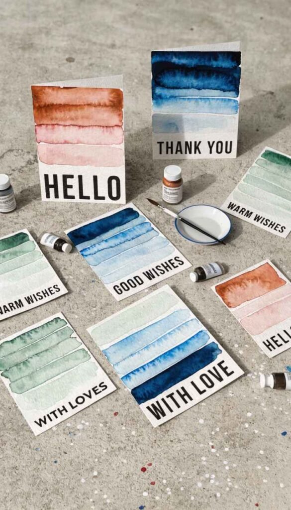 What It Is: Cards painted with horizontal watercolor stripes that blend softly at the edges, creating an ombre or gradient effect in one or multiple colors.