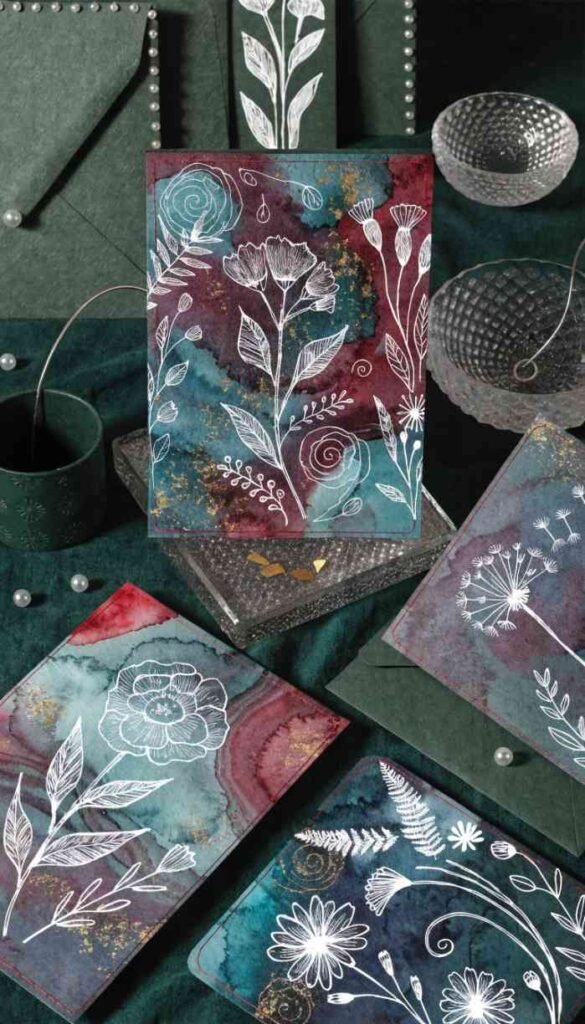7. Alcohol Ink Effect Watercolor Cards