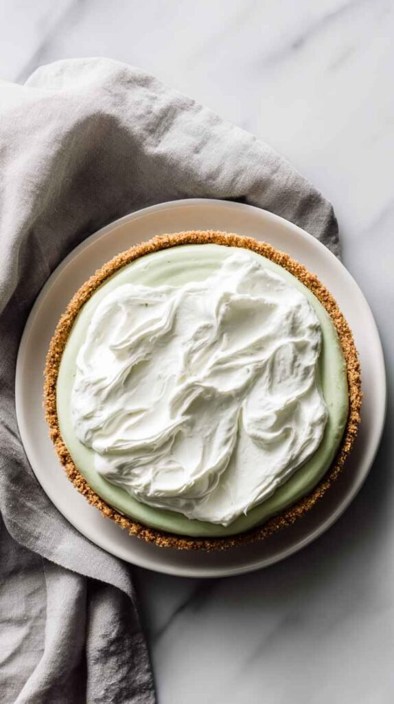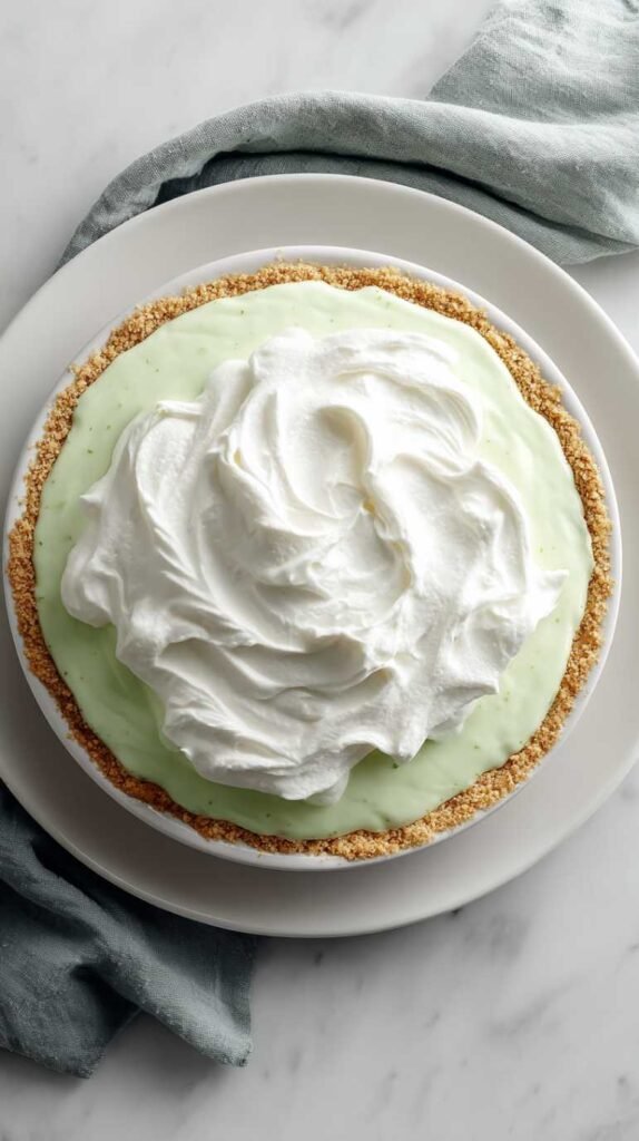 Step 5: Spread or pipe the whipped cream over the chilled pie. Each bite combines cool creaminess with bright lime flavor—soft, refreshing, and effortlessly soothing.