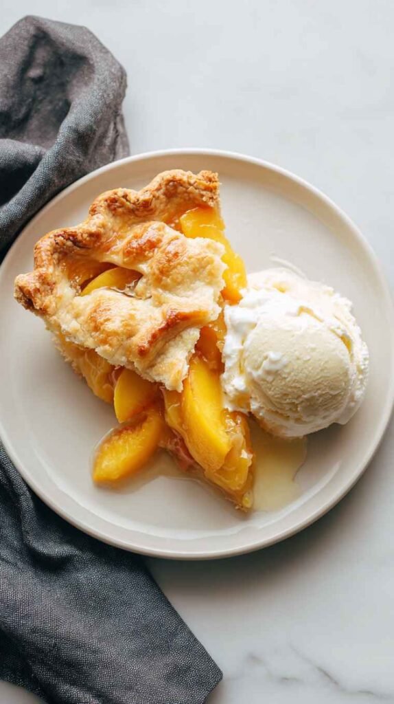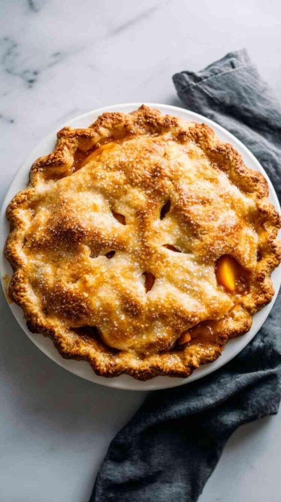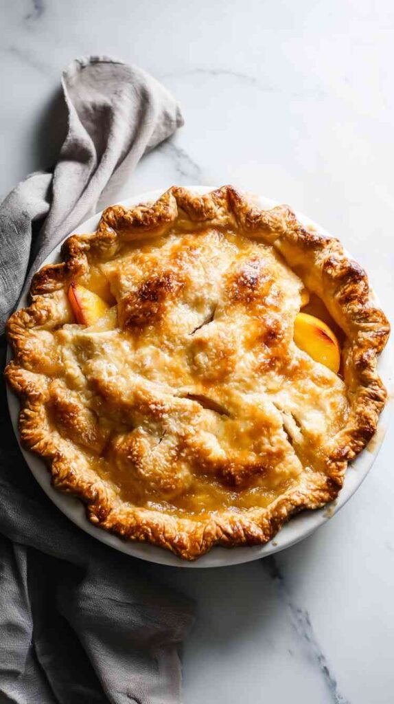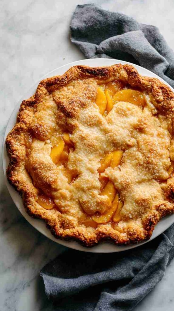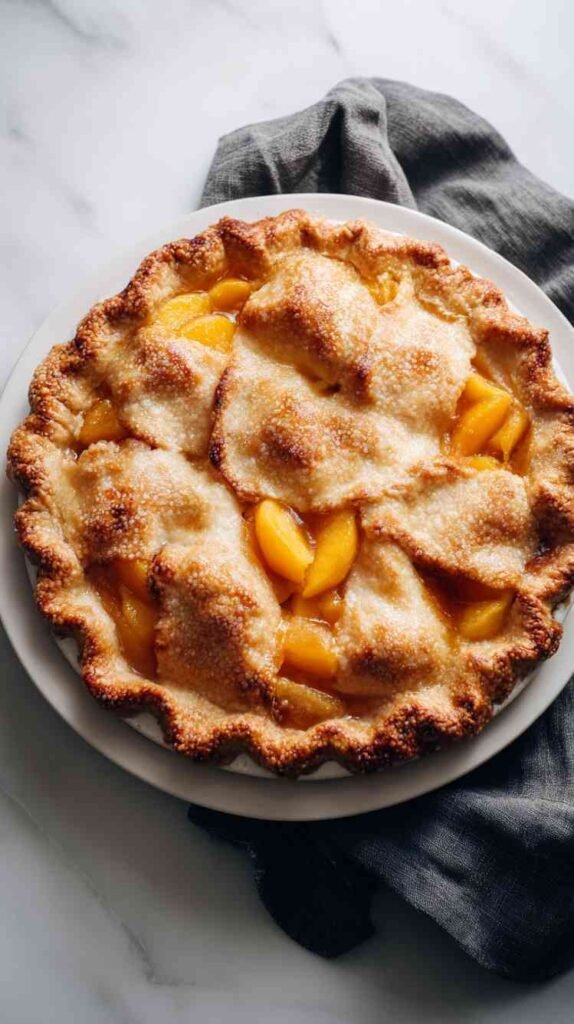 This pie has a deeper, richer sweetness thanks to brown sugar, giving the peaches a warm caramel flavor that feels luxurious without being heavy. When I bake this, the kitchen fills with a buttery sweetness that reminds me of fall evenings when the days get shorter and you start craving soft, comforting desserts. The peaches soften into a silky filling, and each spoonful tastes like a sweet hug wrapped in a tender crust. It’s the kind of pie that invites people back to the table for “just one more slice.”