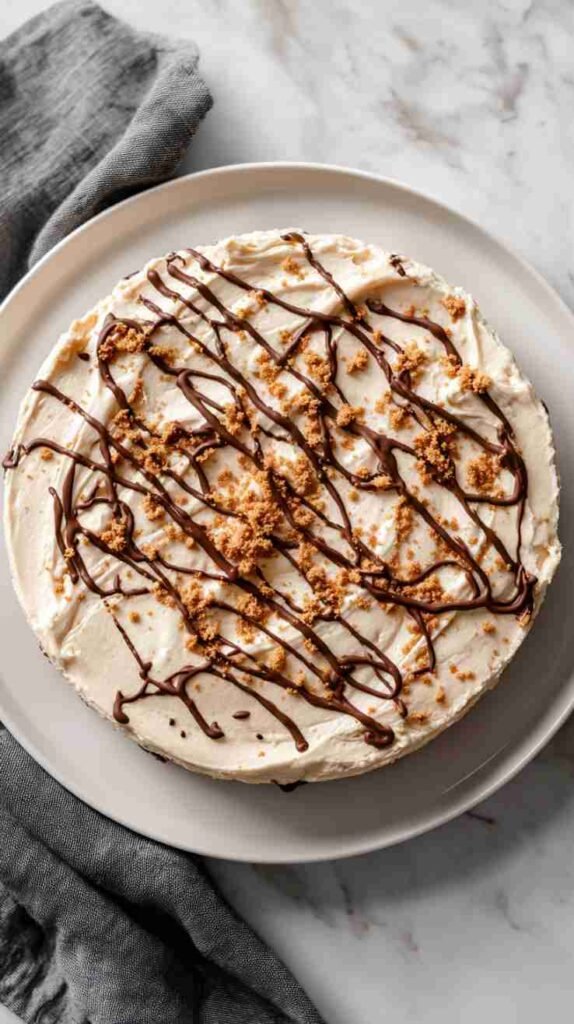 Step 5: Refrigerate for at least 4 hours. When ready to serve, drizzle chocolate on top or add shavings. Each slice is cool, creamy, and deeply comforting, the chocolate adding just enough richness to make each bite feel complete.