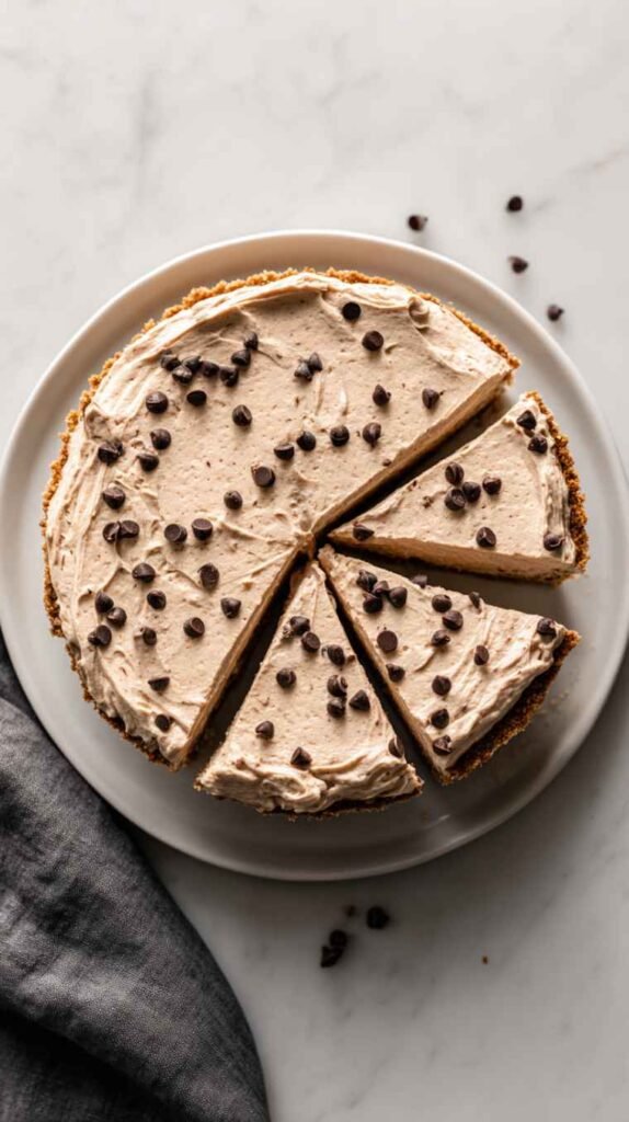 This pie feels like childhood comfort wrapped in a grown-up creamy dessert. The chocolate chips scattered through the peanut butter filling add little moments of joy—tiny bursts of sweetness that break through the cool, velvety cream. The combination is playful yet soothing, reminding you of the simple pleasure of mixing chocolate and peanut butter together. It’s the kind of pie you slice slowly, enjoying how the filling melts softly while the chocolate chips give each bite a sweet little surprise.