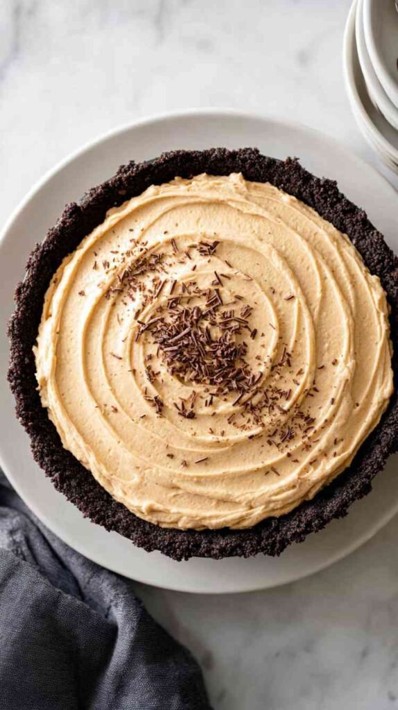 There’s something incredibly comforting about the mix of peanut butter and chocolate, especially in a pie that feels cool, silky, and indulgent. This recipe always brings me back to moments when I needed something sweet to restore me after a long, draining day. The chocolate crust feels rich and grounding, while the peanut butter filling is creamy and soothing in a way that almost feels like a warm hug. I love how simple the ingredients are, yet how special the final pie tastes. It’s one of those desserts that you serve chilled, letting each bite melt slowly, reminding you that joy doesn’t need to be complicated—it can be soft, creamy, and quietly wonderful.