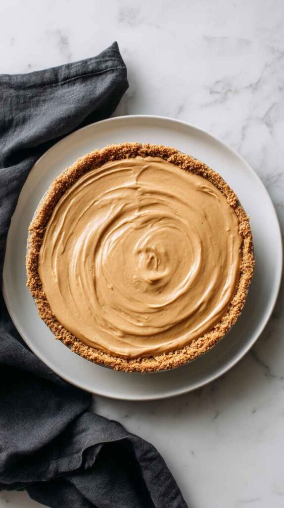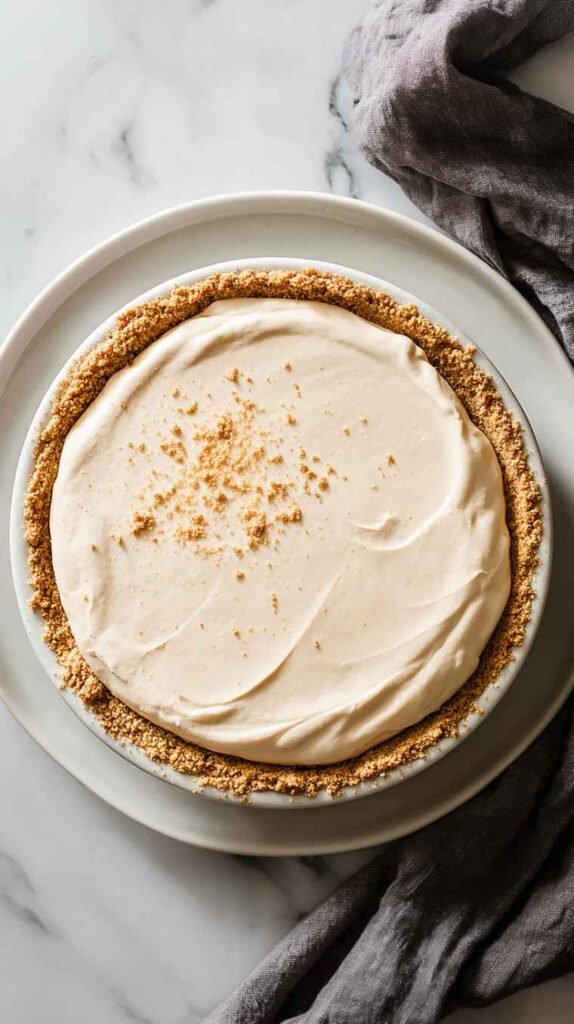 Step 4: Spoon the filling into the graham crust, smoothing the top. The crust’s golden color wraps around the creamy filling beautifully, creating a dessert that looks comforting even before it sets.