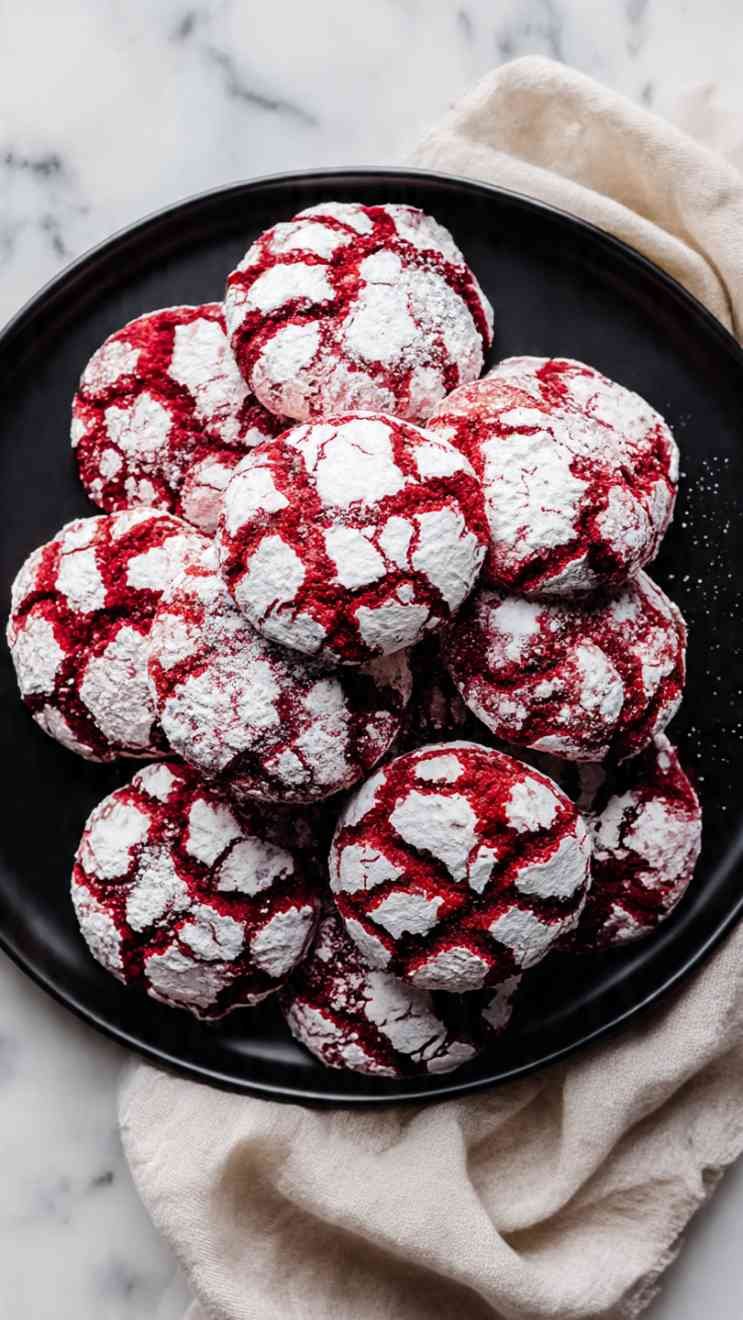 Red velvet crinkle cookies have that beautiful crackled appearance with powdered sugar creating stunning contrast against the red. The combination of fudgy interior and crispy powdered sugar coating makes these visually striking and delicious. I created this recipe when I wanted red velvet cookies with that iconic crinkle cookie look. The key is rolling them in powdered sugar which creates the dramatic cracks as they bake. This has become my favorite showstopper cookie because they’re so beautiful. Every cookie has unique crackled patterns.