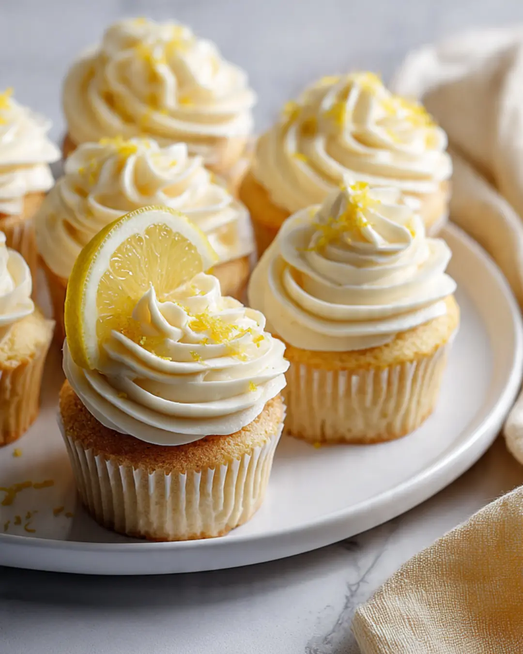 7. Decorate: Pipe the frosting onto the cooled cupcakes and garnish with a thin slice of lemon or extra zest.